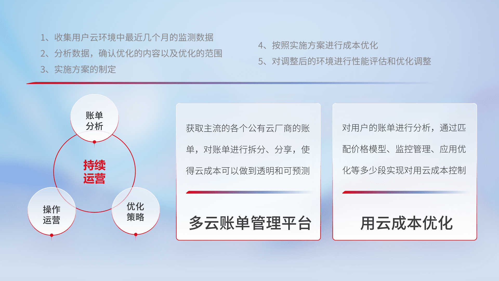 监控业务系统资源开销,,对资源的消耗精确计量,,实现费用的透明化管理,,,不断提升资源使用率,,,调整资源购买方式,,降低资源费用成本,,,用云成本可预测、、、用云费用可优化,,,云资源配额有据可依。。
